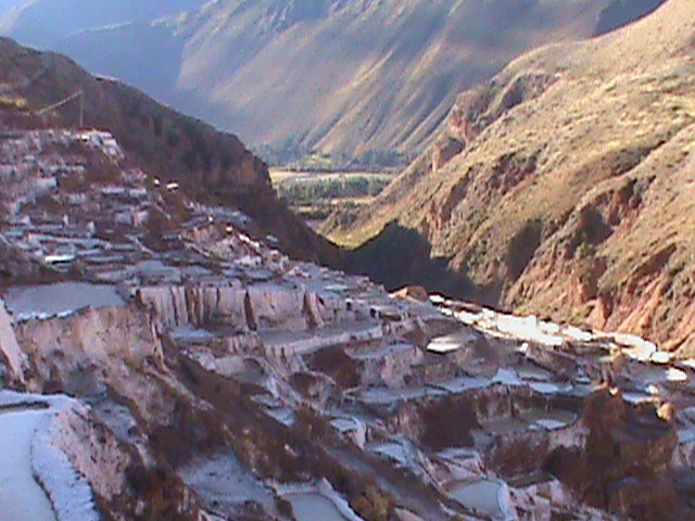 DSC00212The Maras Salt Mines cover an entire mountainside and make up the income for dozens of families. Individual pools of water and salt that make the hillside look snow-covered. We hiked in along a beautiful path and then enjoyed the subsequent hike out through a valley. This picture cannot even begin to do justice to the view.